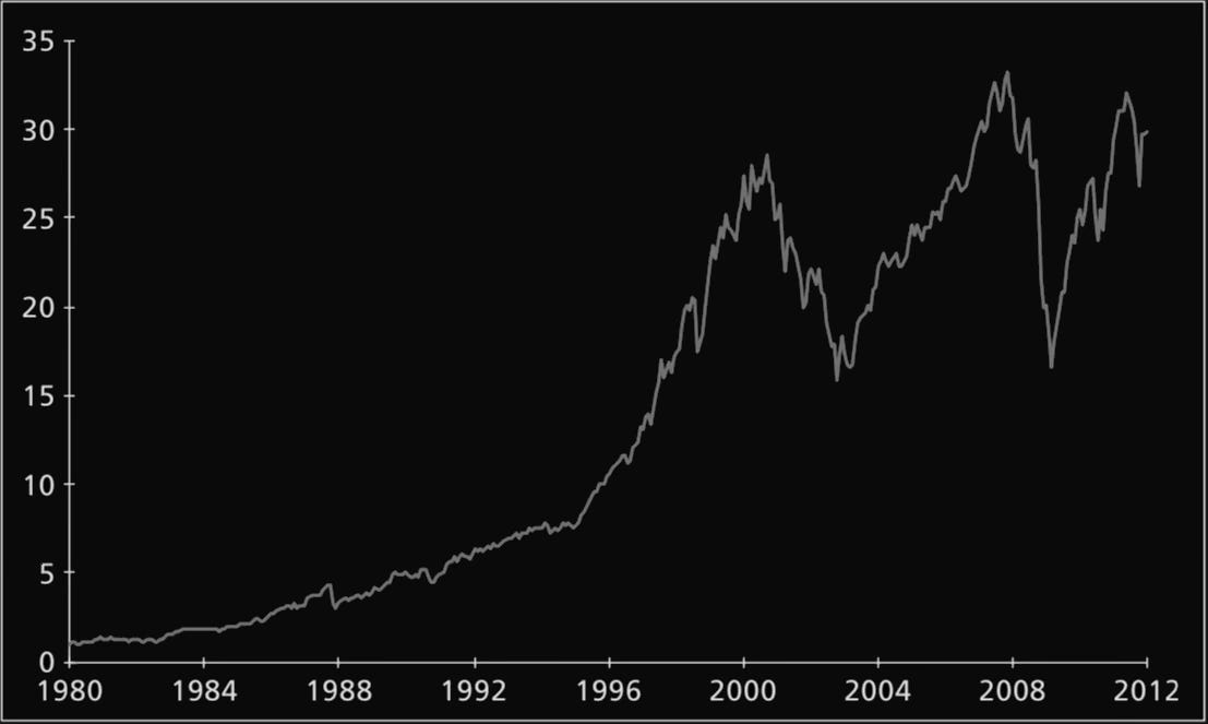 К середине 2000-х годов экономика выглядела крепкой. Если в начале 2000-2002 годов рынок акций серьезно упал, то начиная с 2003 года он резко начал восстанавливаться (график 2) и вернул все потери после кризиса в сфере технологий. Важно добавить, что банковская система также выглядела надежной.