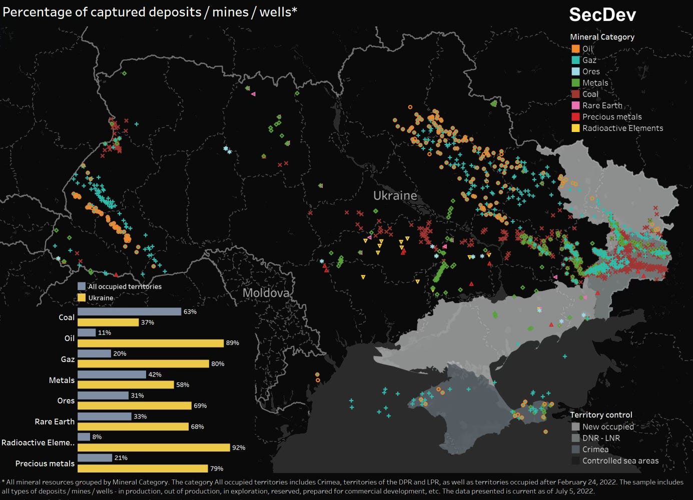 Более новые исследования, которые провели SecDev, показали, что на текущий момент на оккупированных рф территориях, находятся углеводороды на сумму более $12 трлн, а общая оценочная стоимость национальных ресурсов Украины оценивается в более $26 трлн. Это ровно те суммы, которые озвучивал старший сенатор США Линдси Грэм в своем интервью Face of Nation: