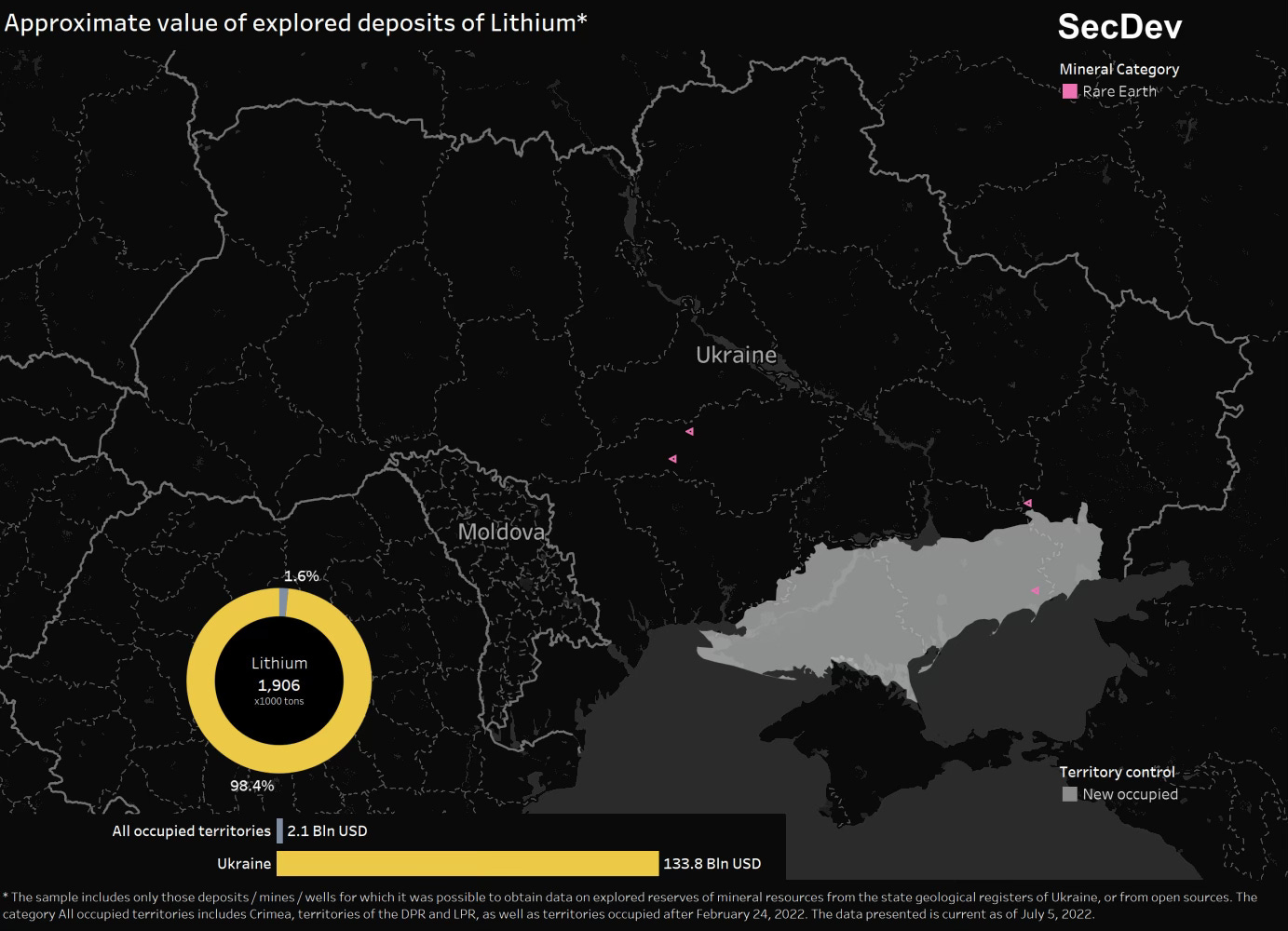 Если взглянуть на исследования Украинской геологической службы, в древних породах Украинского щита скрыты месторождения лития с огромным потенциалом. Эти месторождения находятся преимущественно в районе Мариуполя, портового города Донбасса. Ту же информацию опубликовало издание The NY Times