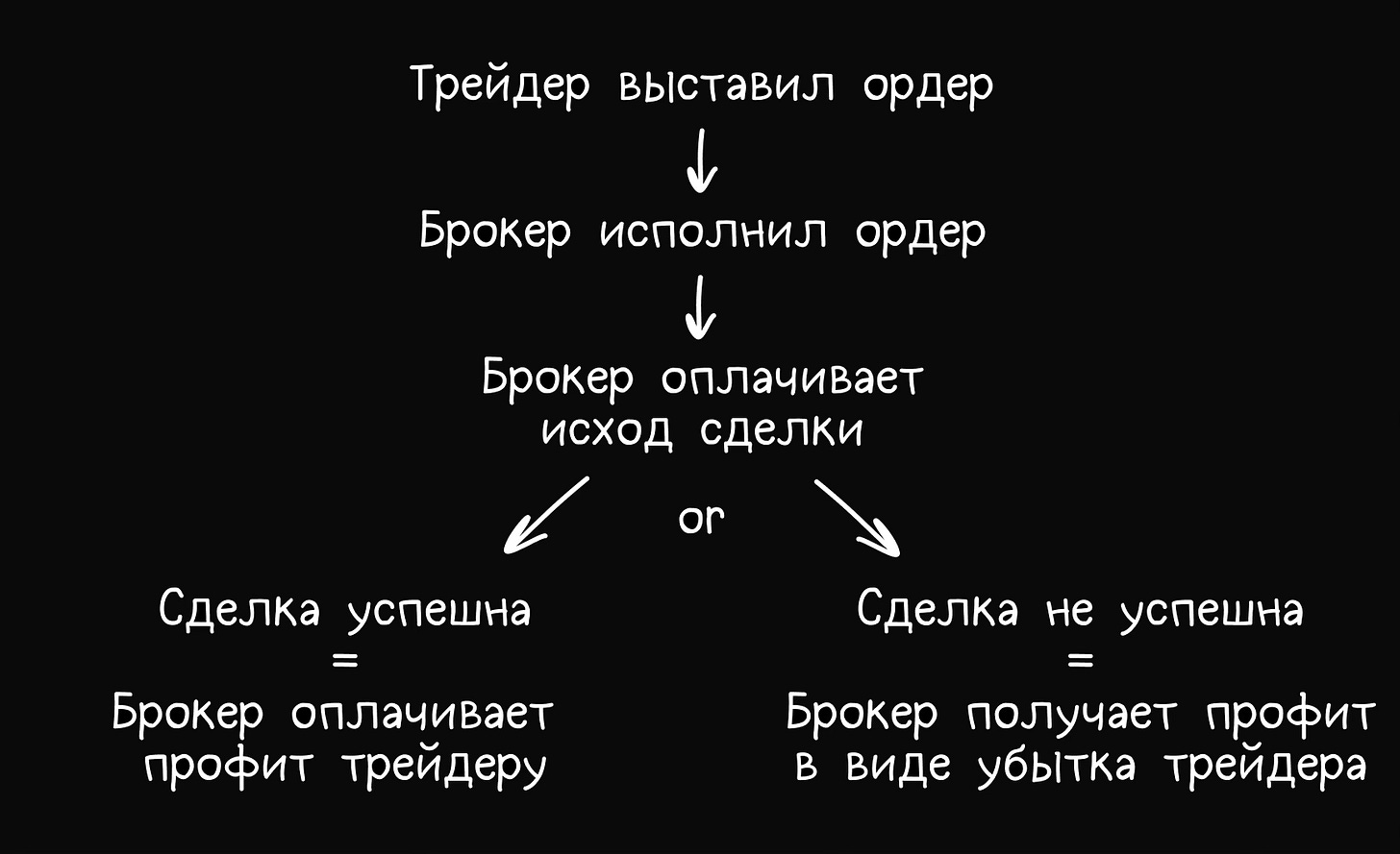 Точно так же, как у вас есть “setup”, с определенным процентом winrate, так и брокер действует по тому же принципу, где трейдер является переменной в его формуле. Отличный winrate и есть главной причиной, почему многие брокеры используют именно такой формат работы.