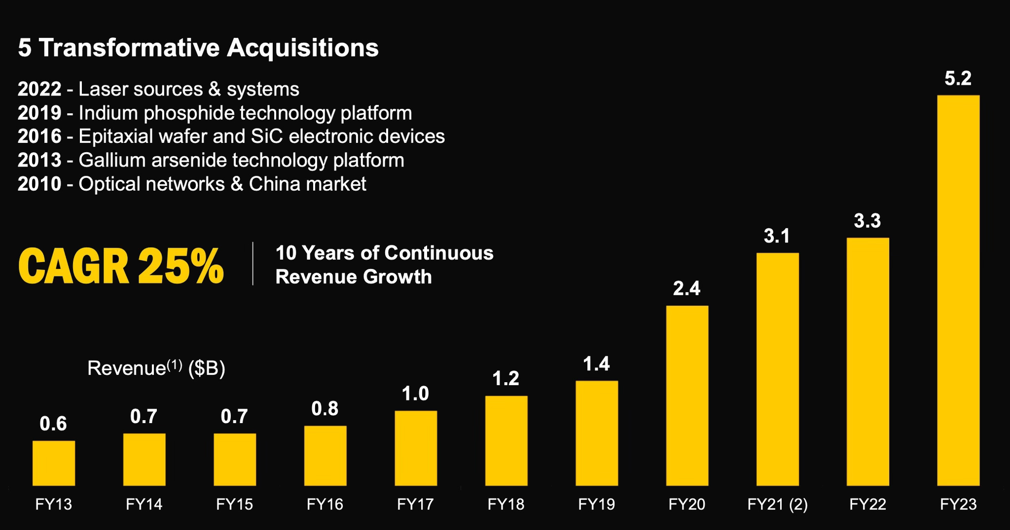 Coherent - многоуровневая компания, которая имеет широкую диверсификацию продукции. Первое, что я вижу в перспективе для Coherent - это рост клиентской базы для продаж трансиверов 800G, обоснованный масштабированием ИИ/машинного обучения. Второе - рост продаж телекоммуникационного оборудования для 5G технологий, по мере их развития.