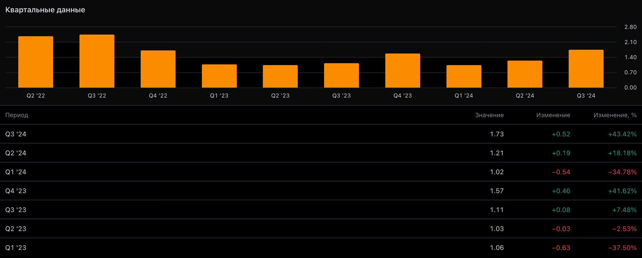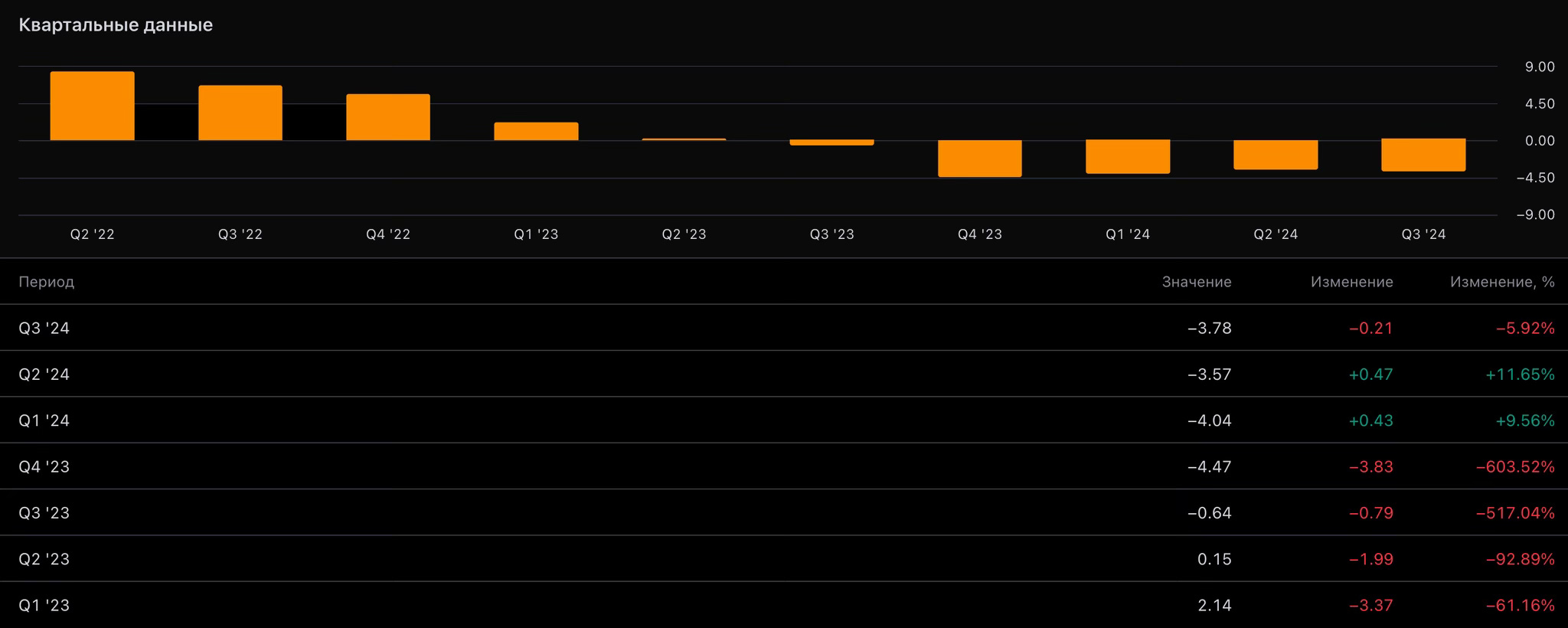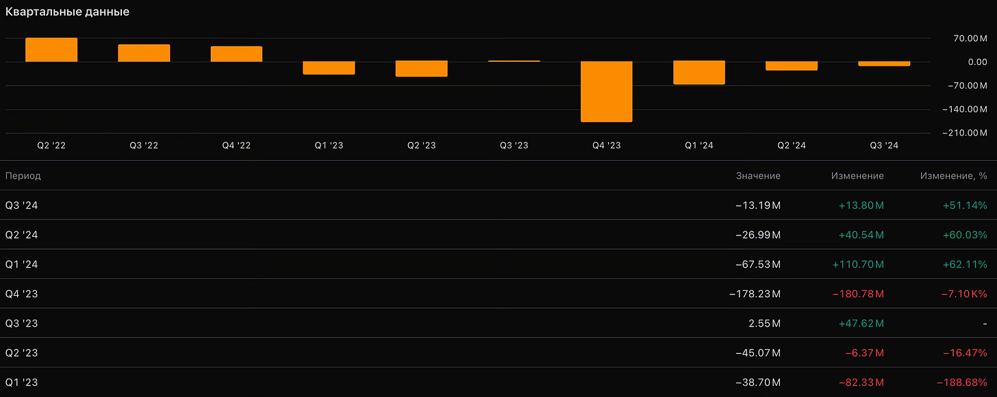 Да, ROE показывает отрицательные значения по отношению к Q2’24, но он выше, чем в предыдущих кварталах (Q4’23, Q1’24). Отрицательный ROE означает, что у компании убытки и высокий уровень долга. И это действительно так, но связано это по большей мере с инвестициями в бизнес.